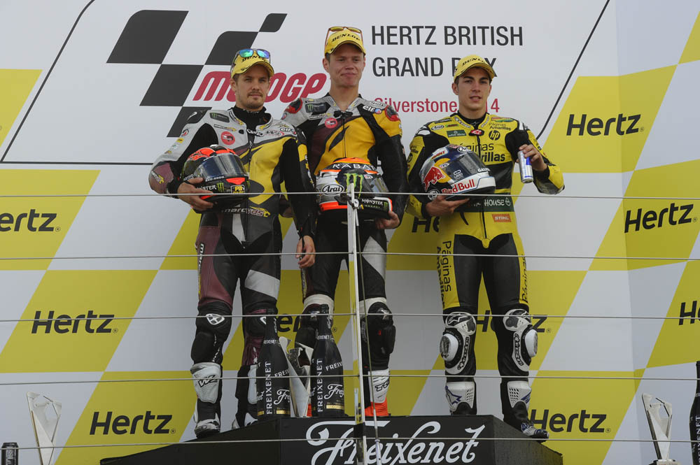 La carrera de Silvestone fue un punto de inflexión en la temporada. Había hecho un gran fin de semana de entrenamientos, pero una vez que empezamos la carrera me pasaron muchos pilotos. Llegó un momento, cuando llevaba tres o cuatro vueltas, que me enfadé de verdad y pensé en tirar a por todas sin importarme si me iba al suelo. A partir de ahí frené más tarde, me entraba la moto en la curva como nunca y adelantaba como nunca. Me enfadé tanto que solo pensaba en llegar al primero, que era Mika y no me iba a conformar. Pensé «todo o nada» y tuvimos una dura batalla cuerpo a cuerpo con Maverick detrás. Creo que fui muy fuerte en esa carrera y a partir de ahí sentí eso de querer es poder. Ese día me lo creí y a partir de entonces si quería ganar tenía que quererlo con todas mis fuerzas.