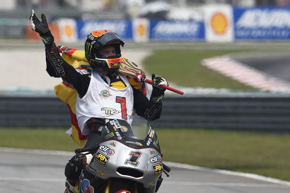 Después de MotorLand, la gira asiática fue muy rara para mí. En esas carreras me notaba con más tensión. Me resultaba muy fácil ser el más rápido en entrenamientos, rodaba a ritmo de récord y conseguimos las tres poles, pero a la hora de la verdad, en carrera, no sé por qué no era tan rápido. Solo cuando veía delante a Mika parecía que me encendía. Era algo instintivo, pero lo bueno es que acabé delante de él en Australia y en Japón; y ya en Sepang corrí con la calculadora, aunque la saqué casi sin darme cuenta. Malasia fue una carrera durísima físicamente por el calor y al cruzar la meta lo que sentí es satisfacción y felicidad. Muchas ganas de llegar al pit lane y abrazar a mi equipo y a los míos. Todo fue muy rápido porque estaba muy cansado. En Valencia llegamos campeones, sin presión, y lo único que quería era ganar la carrera. Volvió el Tito fuerte mentalmente de mitad de temporada, la pena fue no poder cerrar el año ganando, por culpa de un vacío en el depósito de gasolina.