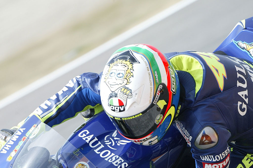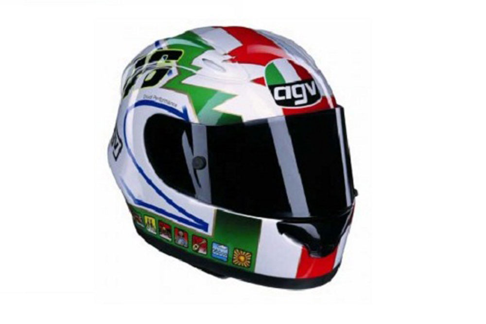 Fiel a su tradición de estrenar una ornamentación singular en el Gran Premio de casa, Il Dottore compitió en la carrera de Mugello de la temporada 2002 con un AGV que rendía tributo a su padre Graziano (la decoración era muy similar al que ya luciera su progenitor durante sus años de competición). Una réplica, cuya diferencia más notable con respecto al original fue la incorporación del 46 en los laterales.
