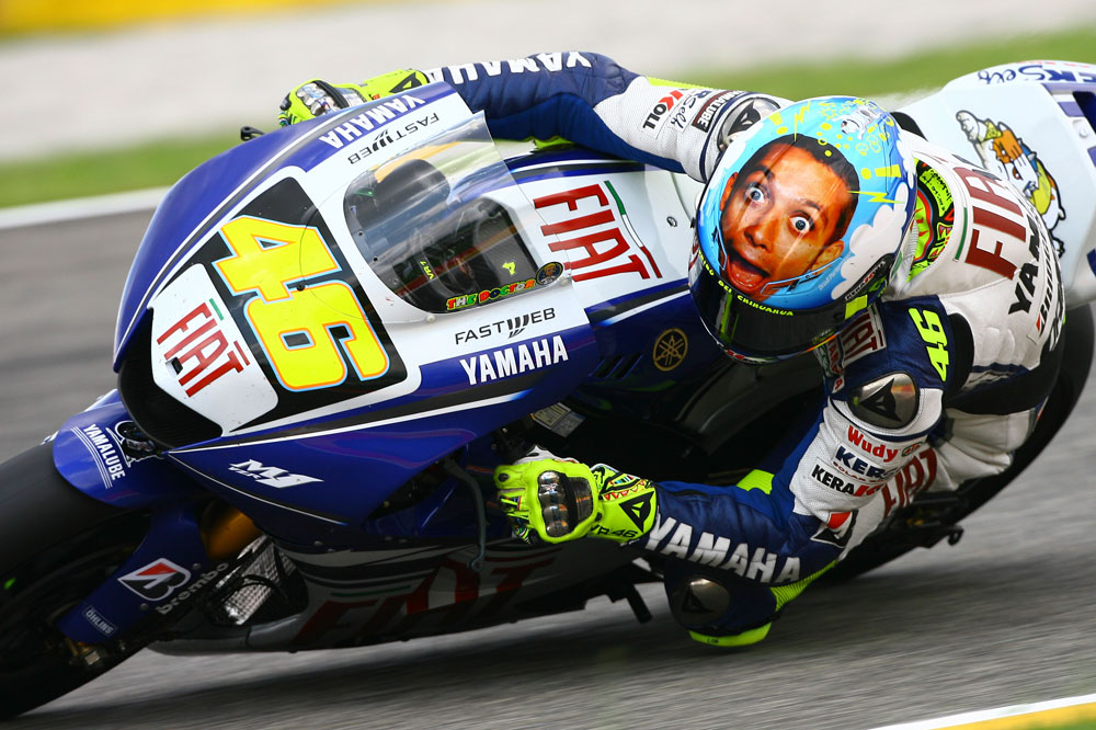 Sin duda alguna, el AGV que Vale estrenó con motivo del GP de Italia de 2008 se encuentra entre los más originales que ha llevado nunca. El italiano se superó así mismo con este diseño que incorporaba una foto en primer plano de su cara, con expresión de asombro. Según comentó, el semblante reflejaba las sensaciones que le producía pilotar en Mugello. Genio y figura.