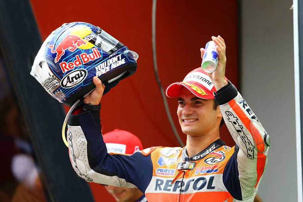 Algo reacio a modificar su Arai, Dani Pedrosa sorprendió a su Club de Fans en el la prueba catalana de esta campaña con un casco que ellos mismos le habían regalado unos meses antes, en su cena anual. En los laterales podía leerse el lema de apoyo del club “No corres solo”.