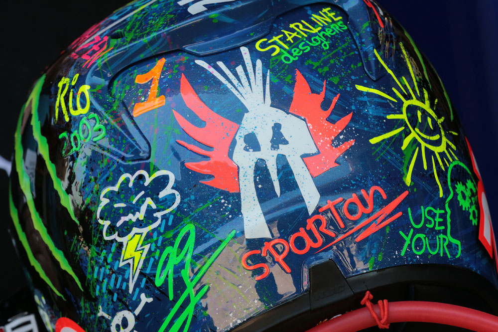 Jorge Lorenzo se alió con Anna Vives para dar a luz ‘Graffiti’, un diseño que exhibió durante la cita de Montmeló ‘13. Muy colorido y repleto de mensajes positivos y personales (como ‘Rio 2003’, la primera victoria del mallorquín en el Mundial), el modelo causó sensación. Con posterioridad al evento, fue subastado por más de 27.000 euros.